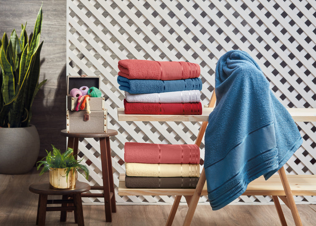 As toalhas de banho Premium são produzidas com corpo liso, uma linda barra para bordar e belíssimos efeitos decorativos.